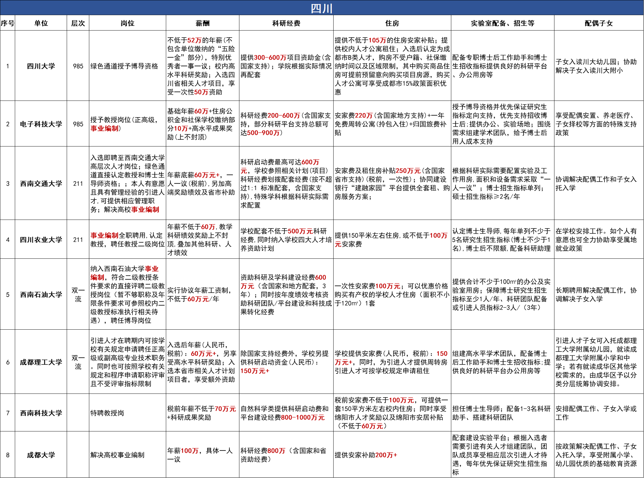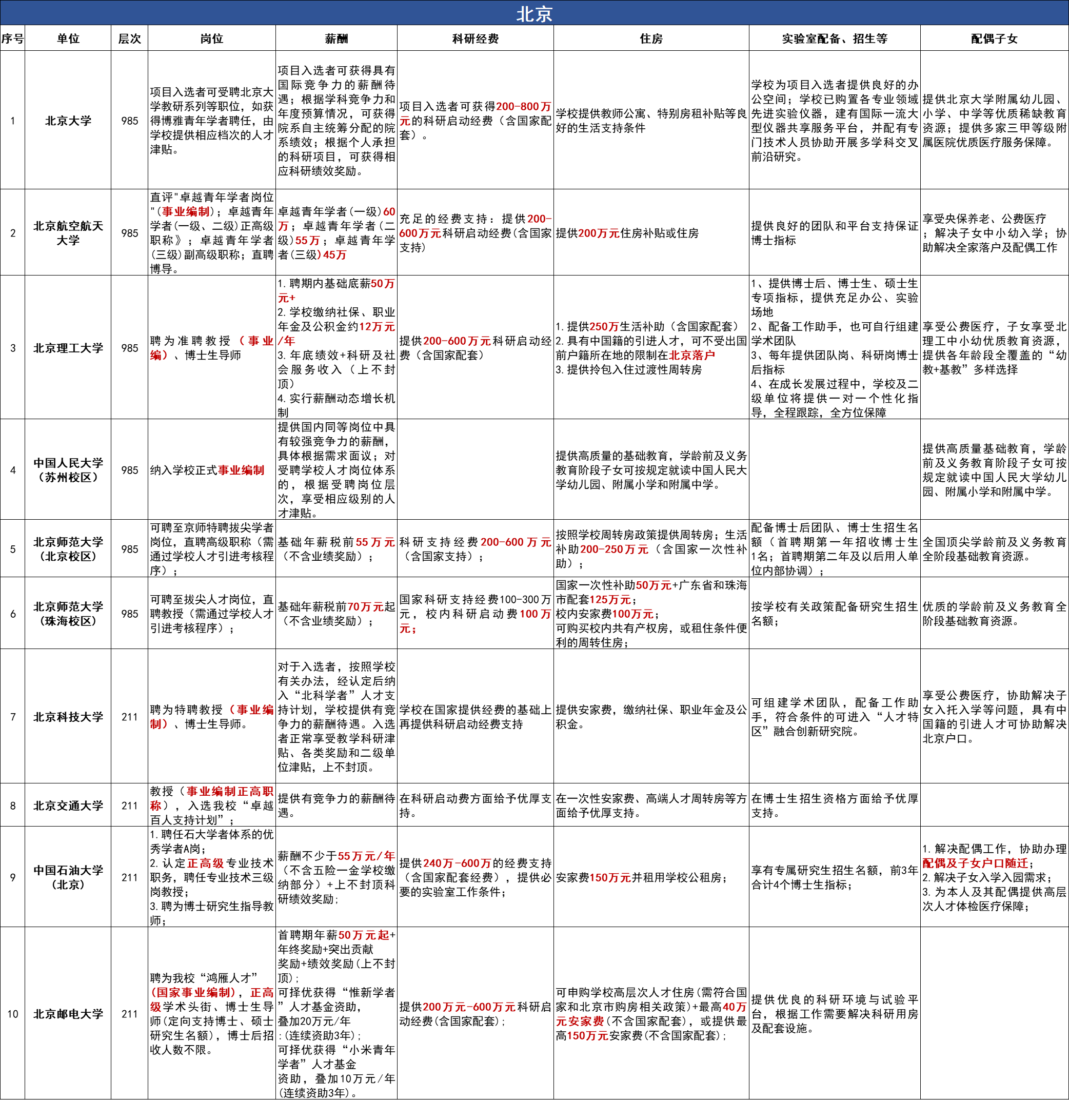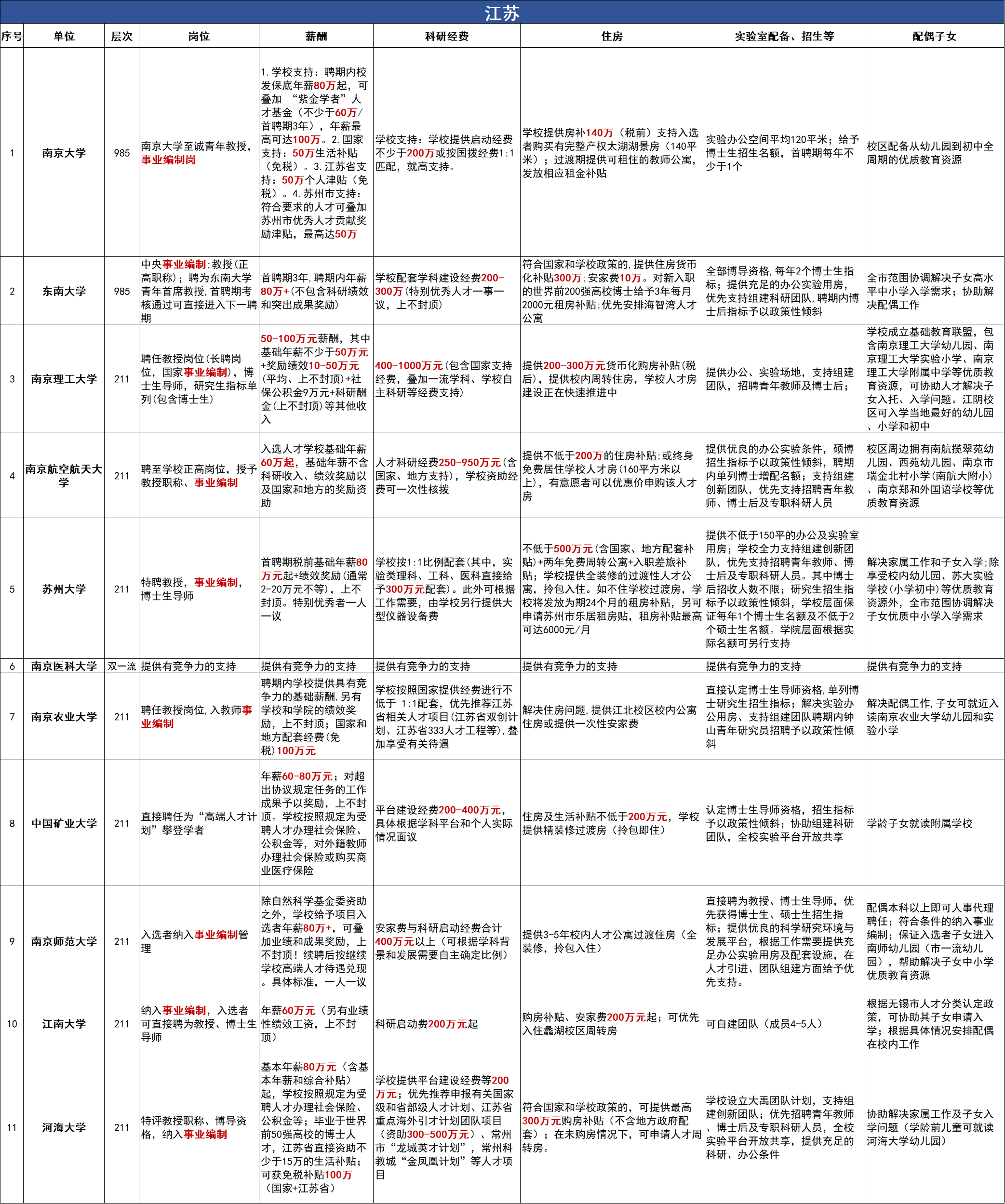 可以看出,各大院校為了吸引人才都非?!跋卤尽保匠甏鲈?00萬(wàn)以上的大有人在,更有豐富的科研經(jīng)費(fèi)及安家費(fèi)。一起來(lái)看看吧~