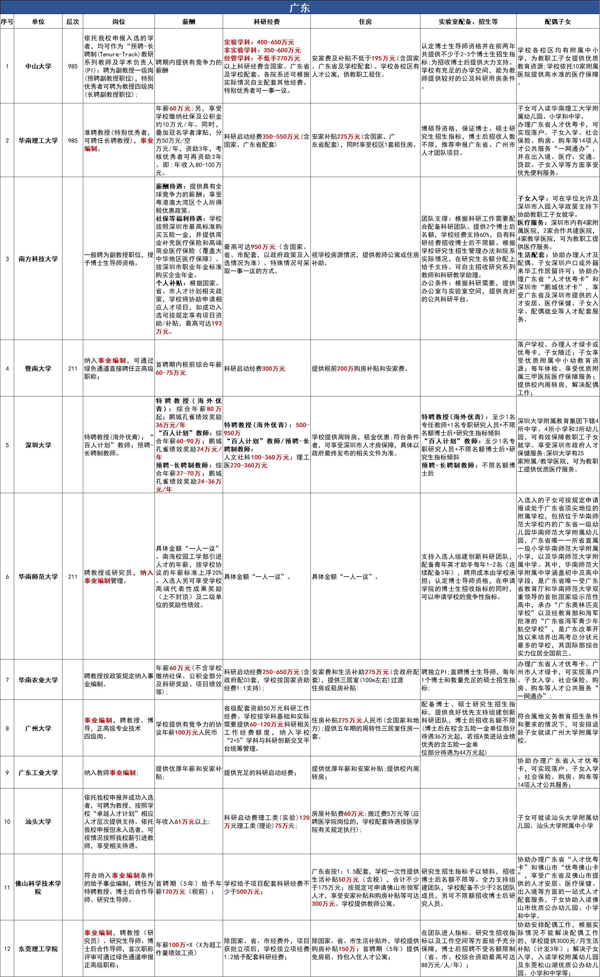 小喬在這里,從崗位、薪酬、科研經(jīng)費(fèi)、住房、實(shí)驗(yàn)室配備/招生、配偶子女待遇等維度,為大家整理了北京、上海、廣東、江蘇、湖北以及四川這6大熱門(mén)地區(qū)的高校海外優(yōu)青待遇(小編手工統(tǒng)計(jì),如有疏漏敬請(qǐng)指正),幫助大家更快選擇心儀依托單位。
