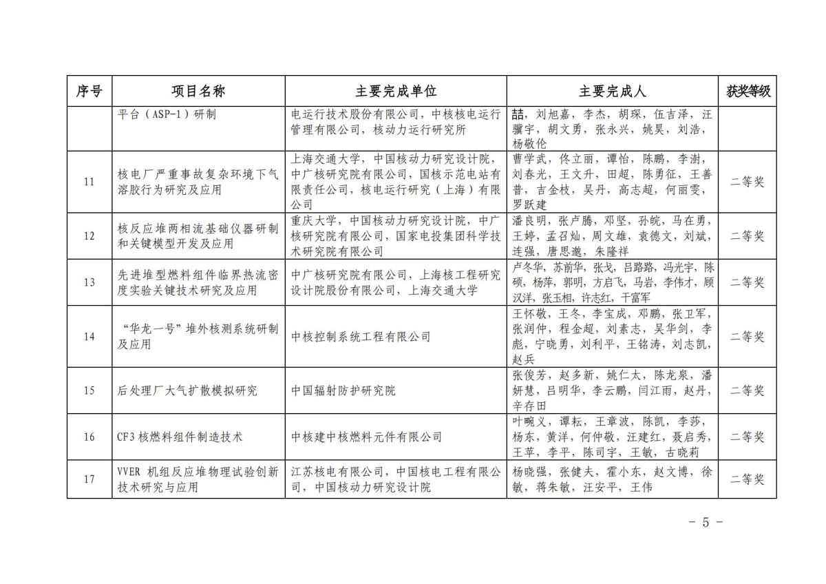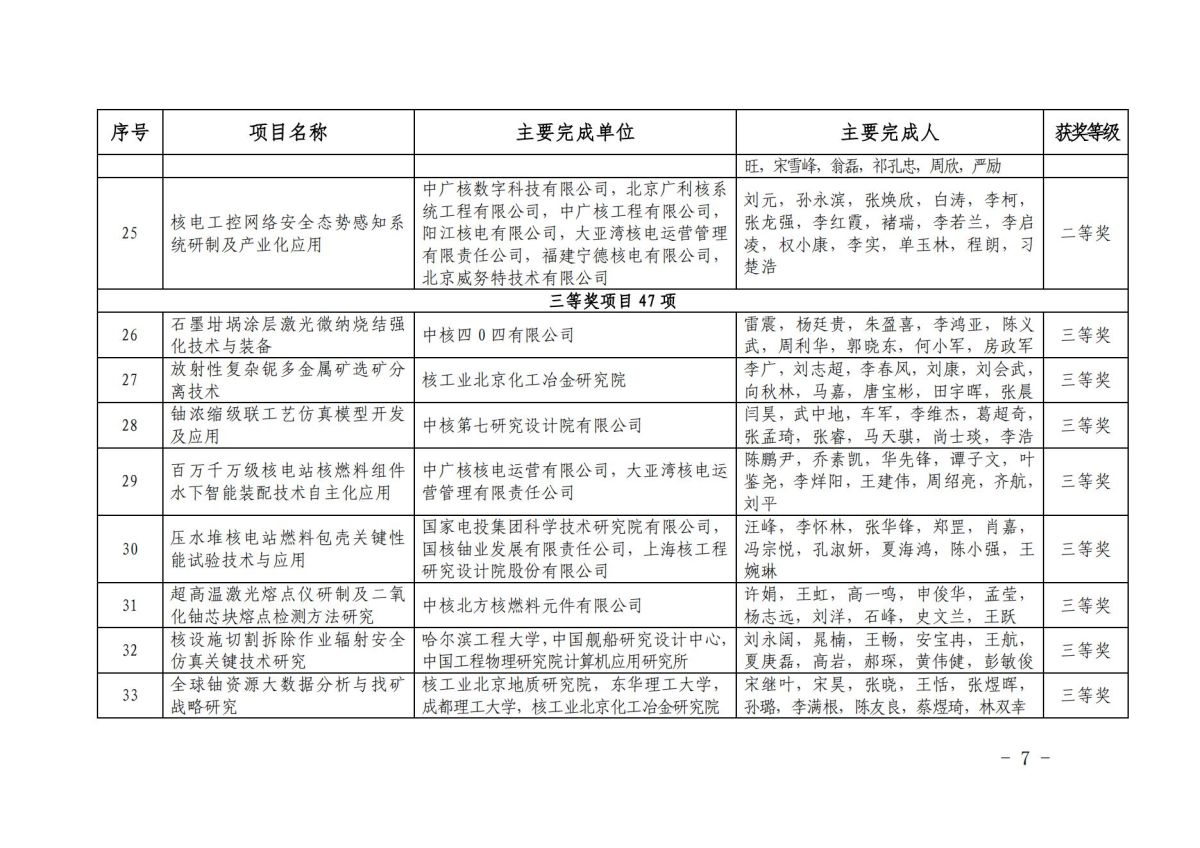 根據(jù)有關(guān)規(guī)定,中國(guó)核能行業(yè)協(xié)會(huì)組織科學(xué)技術(shù)獎(jiǎng)評(píng)審委員會(huì)及相關(guān)專家,對(duì)申報(bào)2024年度中國(guó)核能行業(yè)協(xié)會(huì)科學(xué)技術(shù)獎(jiǎng)(包括科技進(jìn)步獎(jiǎng)、技術(shù)發(fā)明獎(jiǎng)、創(chuàng)新團(tuán)隊(duì)獎(jiǎng)和青年創(chuàng)新人物獎(jiǎng))的265項(xiàng)申報(bào)和推薦材料,進(jìn)行了形式審查、網(wǎng)絡(luò)評(píng)審、專業(yè)評(píng)審組初評(píng)、評(píng)審委員會(huì)終評(píng)、公示,經(jīng)核準(zhǔn),決定對(duì)其中76項(xiàng)優(yōu)秀科技成果、5個(gè)創(chuàng)新團(tuán)隊(duì)和8名青年創(chuàng)新人物予以獎(jiǎng)勵(lì)。