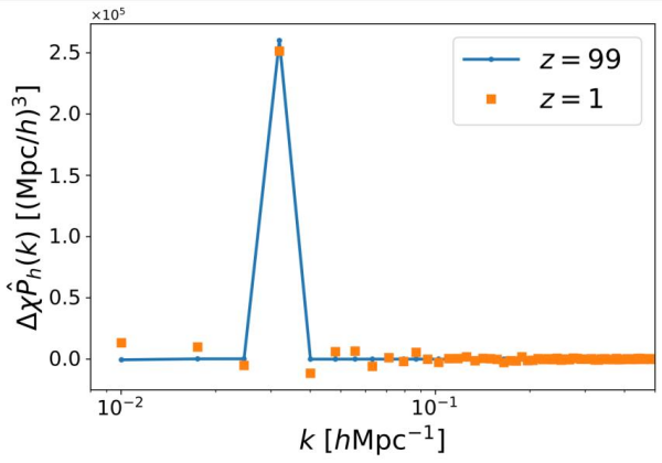 該研究提出了快速產(chǎn)生攜帶宇稱破缺的宇宙學數(shù)值模擬初條件的方法,通過精巧的尺度分解使得快速傅里葉變換能夠適用,提升運算速度,并適用于矢量擾動和張量擾動的普遍情況。同時,數(shù)值模擬結(jié)果證明,早期宇宙宇稱破缺信號不會被晚期宇宙非線性演化抹除,可被精準提取。