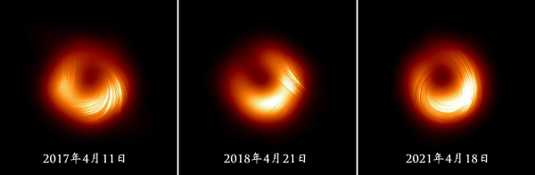 M87黑洞距離地球5500萬光年,質(zhì)量約為太陽的65億倍,首張黑洞照片于2017年拍攝,2019年發(fā)布,其偏振結(jié)果于2021年公布。2018年和2021年,科學(xué)家再次對其進(jìn)行拍攝,持續(xù)研究。此次成果是基于這3次拍攝所取得的最新成果。
