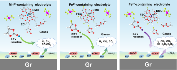 團(tuán)隊(duì)基于對(duì)過渡金屬離子在電池退化中作用機(jī)制的理解,提出兩個(gè)降低有害影響的策略。一是采用與過渡金屬離子結(jié)合能較低的溶劑作為電解液成分;二是在電池化成階段構(gòu)建具有更優(yōu)電子絕緣性的致密SEI膜,以抑制溶劑化過渡金屬離子向負(fù)極擴(kuò)散,并阻斷其對(duì)電解液的催化還原反應(yīng)。