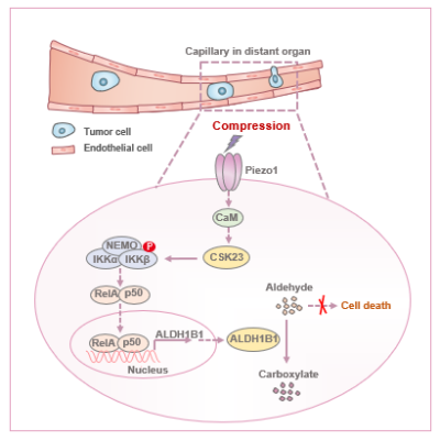 這一研究揭示了機(jī)械力通過重塑醛類代謝調(diào)控細(xì)胞死亡的新機(jī)制,并闡明了該機(jī)制在腫瘤轉(zhuǎn)移中的重要功能。這一發(fā)現(xiàn)深化了對腫瘤細(xì)胞在受限微環(huán)境中生存機(jī)制的認(rèn)識,也為開發(fā)靶向CSK23或ALDH1B1的抗腫瘤轉(zhuǎn)移策略提供了新方向。