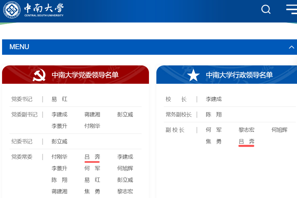 近日,中南大學官網(wǎng)“現(xiàn)任領(lǐng)導”一欄更新后顯示,呂奔已任中南大學黨委常委、副校長。