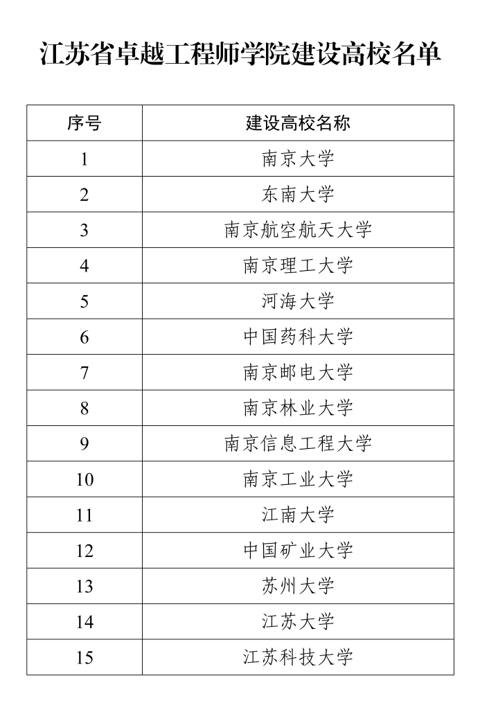 為深入貫徹黨的二十大精神和中央人才工作會議精神,認真落實習近平總書記對江蘇工作的重要講話重要指示精神,根據(jù)《江蘇省卓越工程師學院建設實施意見》(簡稱《實施意見》)精神,省教育廳遴選認定了15所高校作為江蘇省卓越工程師學院建設高校,進一步深化工程碩博士培養(yǎng)體系改革,加快培養(yǎng)卓越工程師。