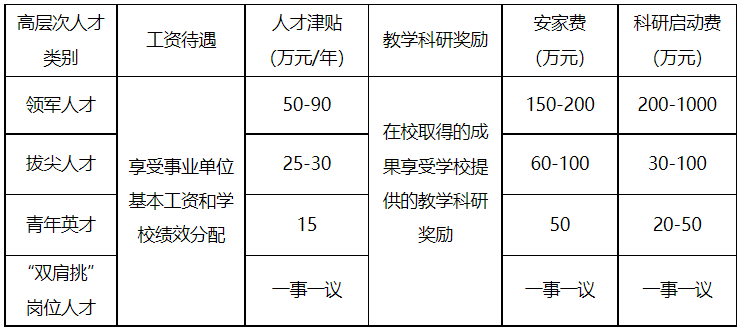 1、高層次人才按照《長沙理工大學(xué)“湖湘學(xué)者”人才計(jì)劃實(shí)施辦法》(長理工大黨〔2021〕97 號(hào))確定薪酬待遇(見表1),提供相應(yīng)安家費(fèi)和科研啟動(dòng)費(fèi),并提供免費(fèi)過渡性住房保障。