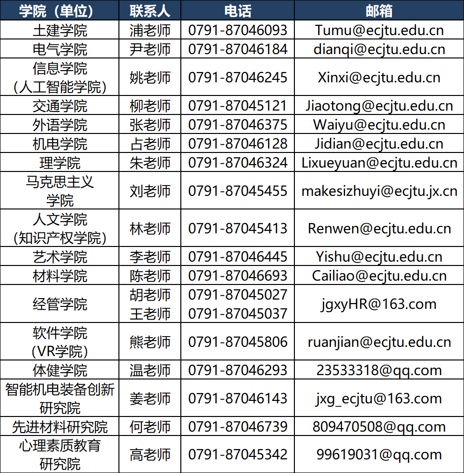 應(yīng)聘者請將個人相關(guān)材料通過郵件方式發(fā)送至學(xué)院聯(lián)系人郵箱并抄送至華東交通大學(xué)人才招聘郵箱,郵件主題樣式名稱為:姓名+XXX專業(yè)+應(yīng)聘XXX學(xué)院XXX崗位。