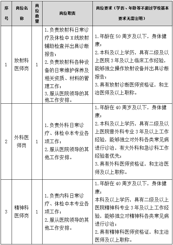 附表:校醫(yī)院招聘崗位