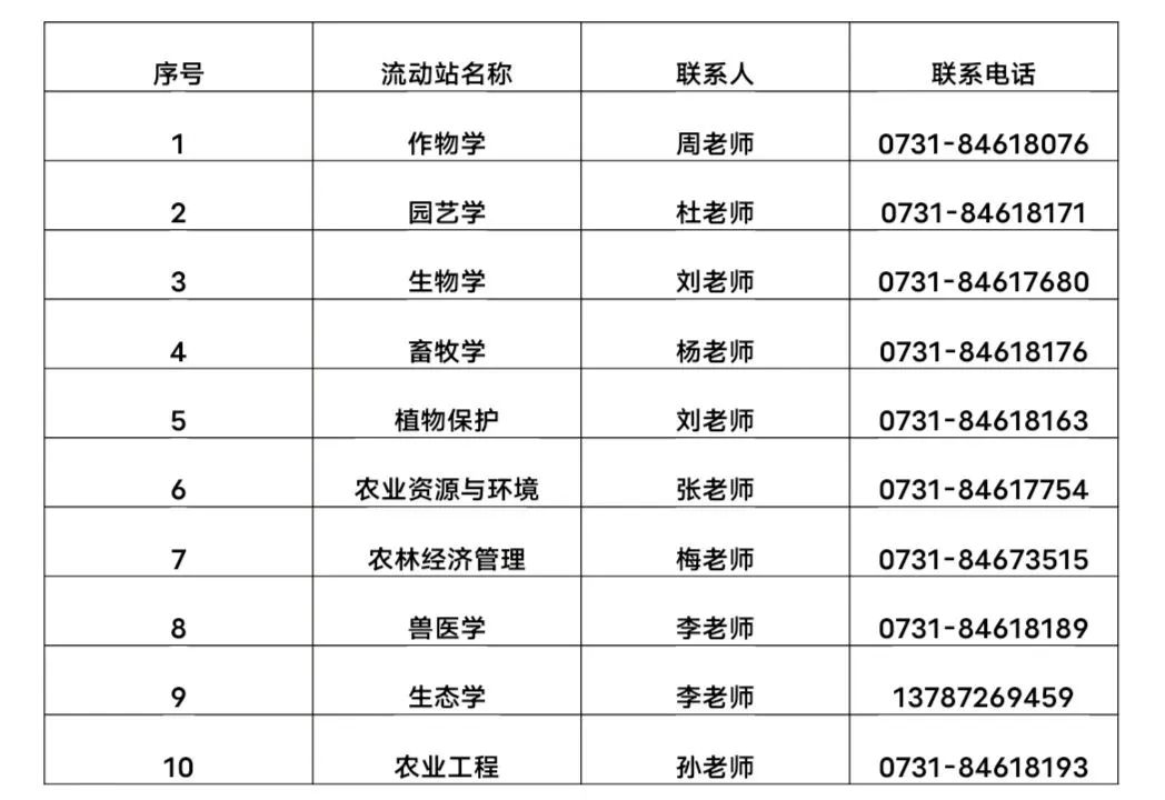 (三)各流動(dòng)站、合作導(dǎo)師聯(lián)系方式及各類型博士后的進(jìn)出站條件見湖南農(nóng)業(yè)大學(xué)博士后網(wǎng)站:http://bsh.hunau.edu.cn