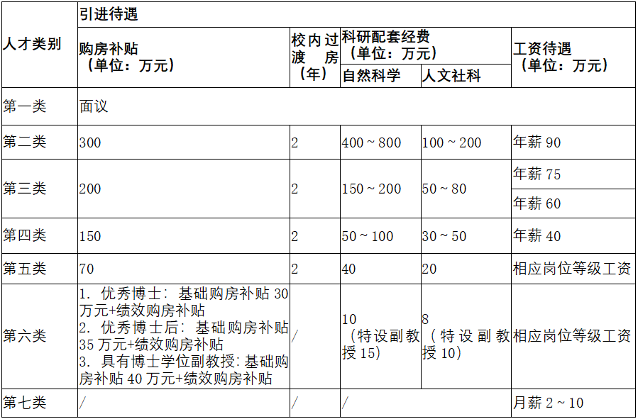 附表1:人才引進(jìn)類(lèi)別與相關(guān)待遇一覽表